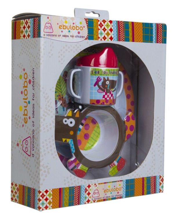 Caja regalo vajilla Louloup plato, bol, cuchara y taza Ebulobo