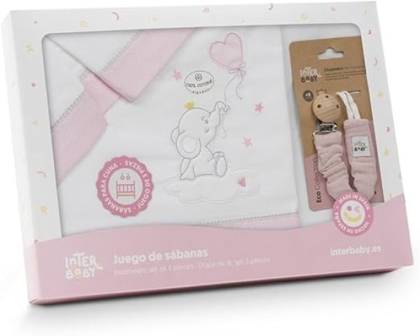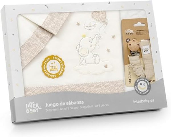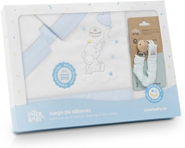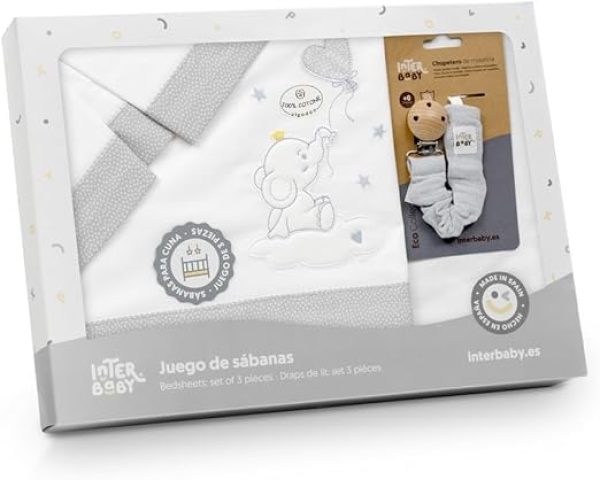 Bajera, encimera y Funda de Almohada + Chupetero de Regalo. Marca Interbaby . Modelo elefante. Suavidad y frescura incomparables: Experimenta la suavidad del algodón 100%Suavidad y frescura incomparables.
