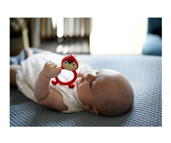 Adorable mordedor con motivo de Caperucita para aliviar las encías doloridas de tu peque cuando comienzan a salir los dientes. El mordedor también es un juguete que ayuda a desarrollar las habilidades motoras (coordinación mano-ojo) de los peques