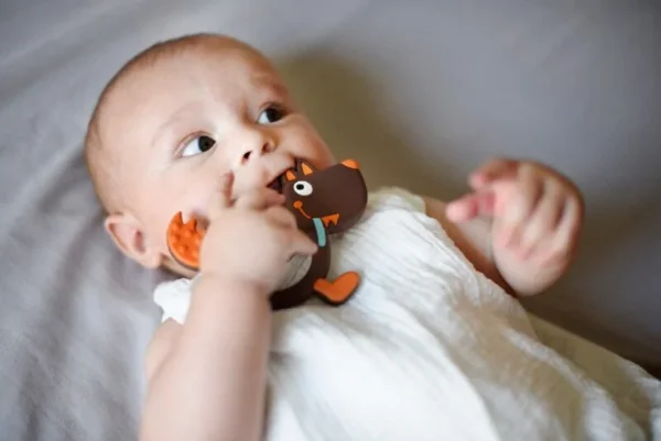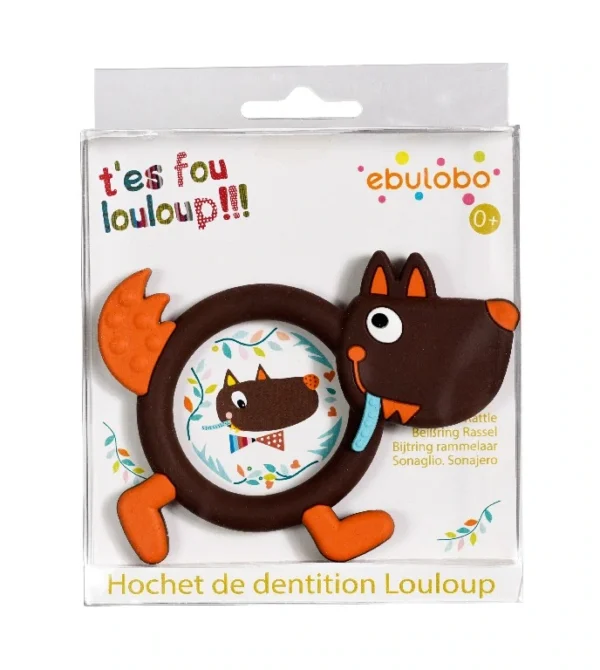 Mordedor de silicona para bebés de la marca francesa Ebulobo. Modelo Louloup, el lobo. Ideal para los bebes y para regalos.