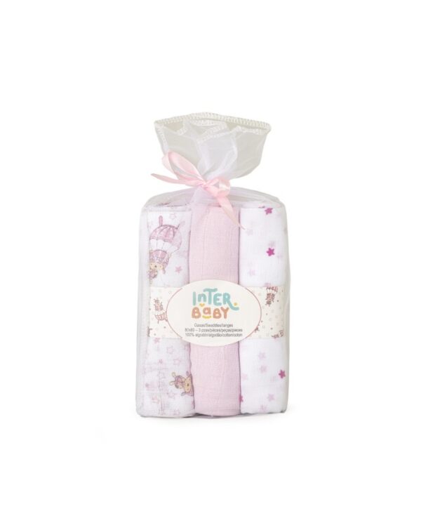 Pack 3 unidades gasas 80x80cm paracaidista Interbaby