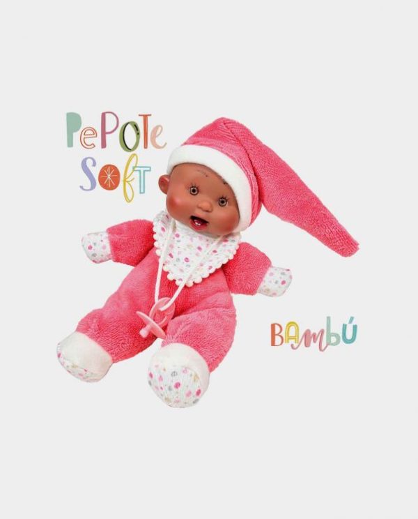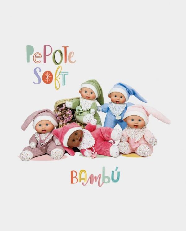 Muñecos de 26 cms con cuerpo de vinilo que permite bañarlos. Incluye chupete.