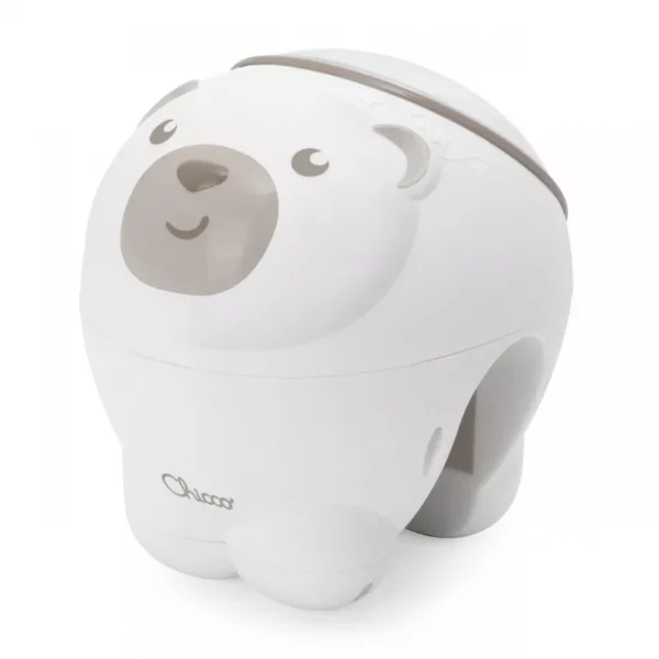 Este osito genera una proyección mágica y dinámica de auroras boreales para crear un ambiente maravilloso para el descanso del bebé. Incluye 30 minutos de música clásica (Mozart, Bach, Glinka) y sonidos de la naturaleza.