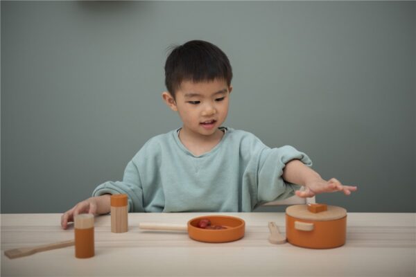 | 24m+ FSC certificado Pintura a base de agua sarten, ola, sal/pimiento, cuchara, tenedor |