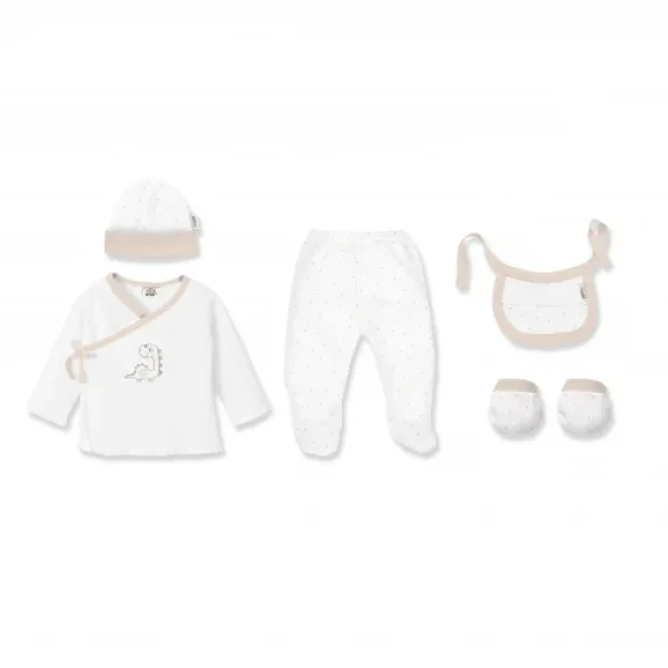 Set de regalo 5pcs bamboo T0-6M Dino blanco/gris