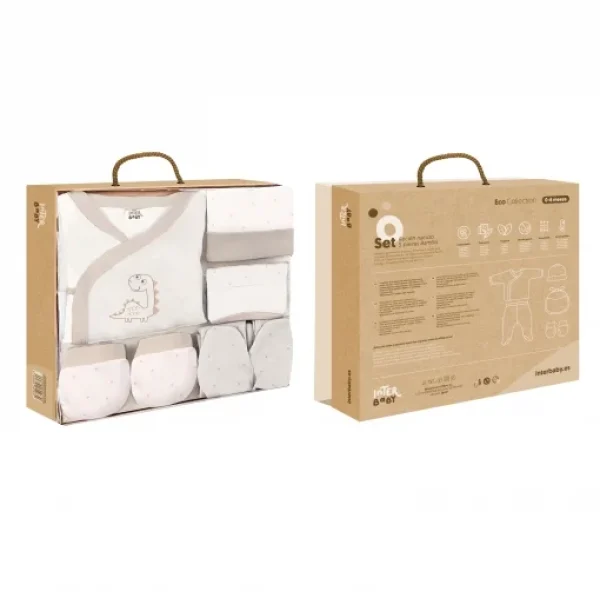 Interbaby crea las cajas de regalo ideales y prácticas para regalar a los futuros papás. Confeccionado en suave punto algodón y viscosa de bambú. El set de primera puesta de talla única, incluye:un gorrito,unas manoplas,un body y un babero, elementos indispensables en la canastilla del bebé. El conjunto pertenece a la colección de puericultura de Interbaby con adorables diseños.