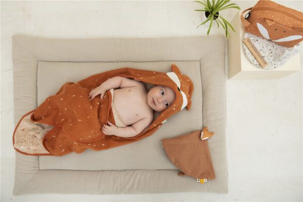 | Esta capa de baño encantará a los peques de la casa con su capucha decorada con uno de los animales de Trixie Material: algodón Terry 100% orgánico. Medidas: 75cm x 75cm Lavable a máquina máx 30ºC .Para niños entre 0 y 12 meses |