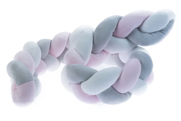 Protector de cuna acolchado en forma de trenza en diferentes colores, es ideal para bordear la cuna a modo de chichonera y evitar así que el bebé pueda golpear su cabecita con paredes o barrotes.