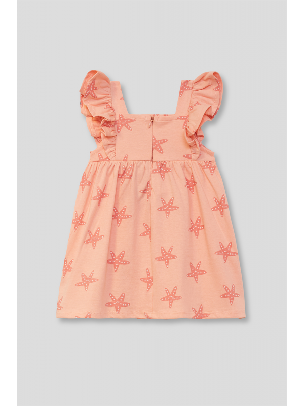 Vestido bebé niña salmón con estrellas de mar y volantes Street Monkey