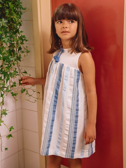 Vestido bebé niña tejido texturizado a rayas azul Laranjinha